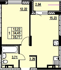 ОДНОКОМНАТНАЯ №7135.77 м2 Однокомнатная №71забронированаОбщая площадь