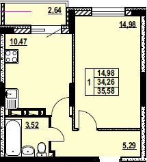ОДНОКОМНАТНАЯ №1735.58 м2 Однокомнатная №17свободнаОбщая площадь