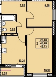 ДВУХКОМНАТНАЯ №4249.73 м2 Двухкомнатная №42забронированаОбщая площадь