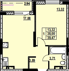 ОДНОКОМНАТНАЯ №17639.08 м2 Однокомнатная №176свободнаОбщая площадь