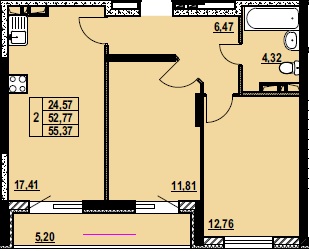 ДВУХКОМНАТНАЯ №12255.37 м2 Двухкомнатная №122свободнаОбщая площадь
