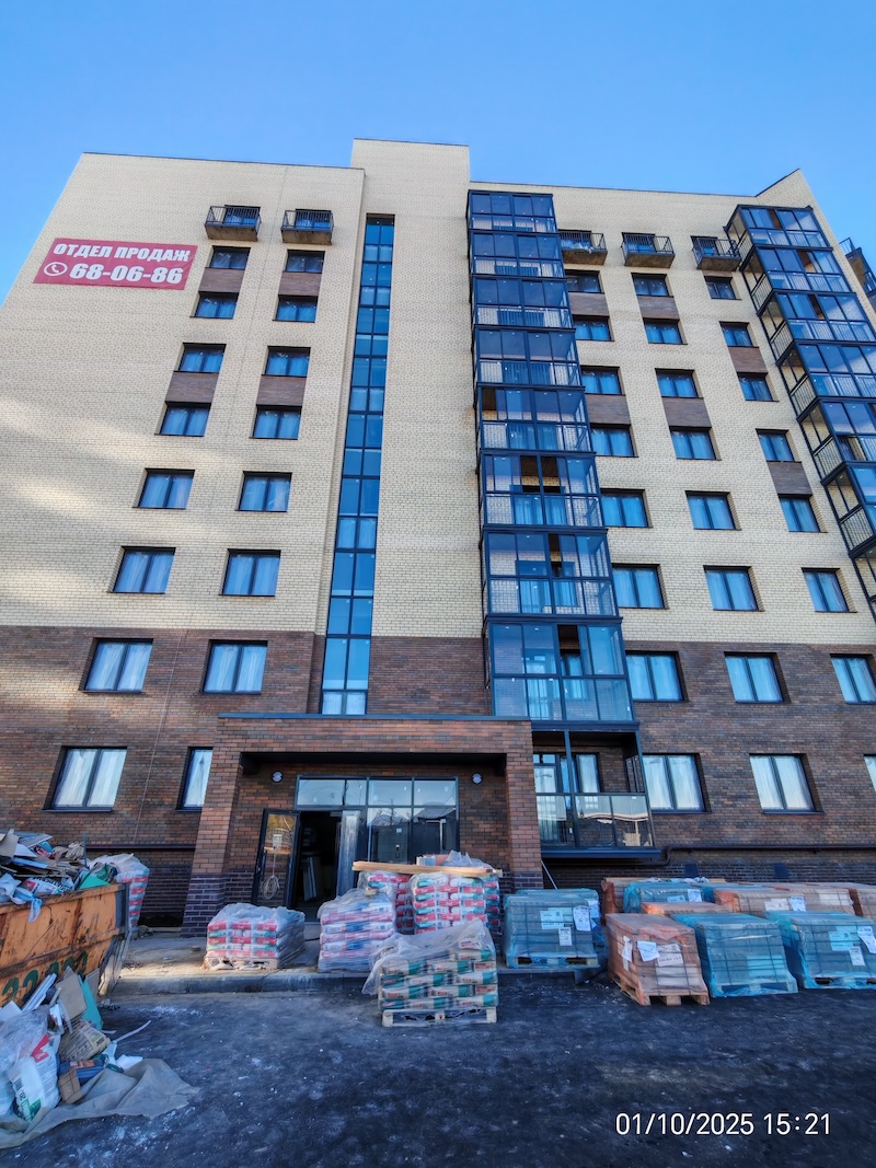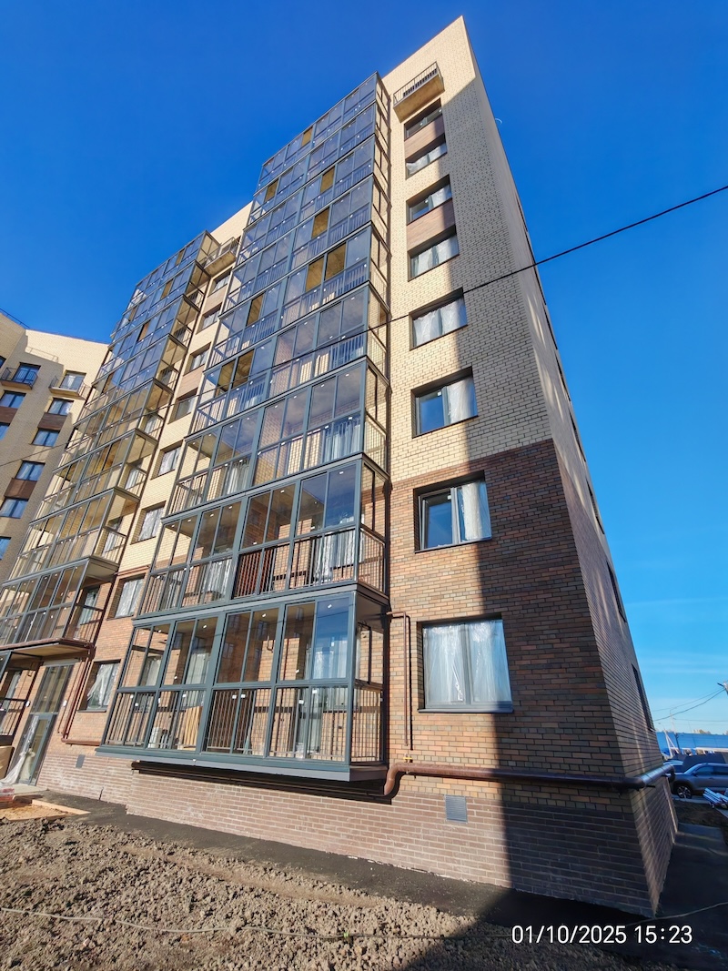 Квартиры передаются с полной отделкой: на полу ламинат, стены обои под покраску, натяжные потолки, санузел — пол и стены в керамической плитке, вся сантехника, межкомнатные двери, входная металлическая дверь, балкон/лоджия с остеклением.
