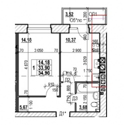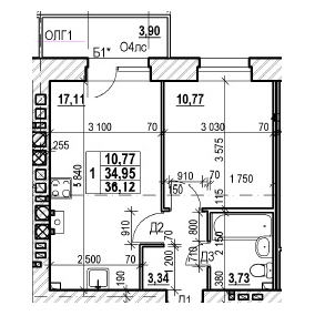 ОДНОКОМНАТНАЯ №9034.78 м2 Однокомнатная №90проданаОбщая площадь