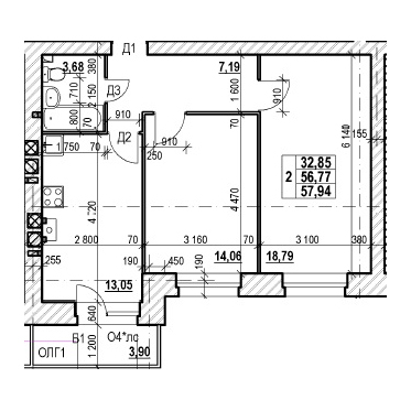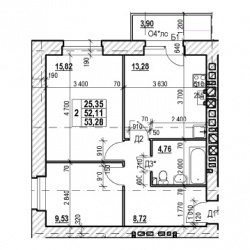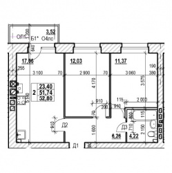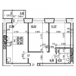 ДВУХКОМНАТНАЯ №9152.8 м2 Двухкомнатная №91проданаОбщая площадь