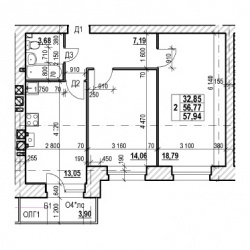 ДВУХКОМНАТНАЯ №8657.94 м2 Двухкомнатная №86проданаОбщая площадь