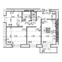 ТРЕХКОМНАТНАЯ №10970.52 м2 Трехкомнатная №109свободнаОбщая площадь