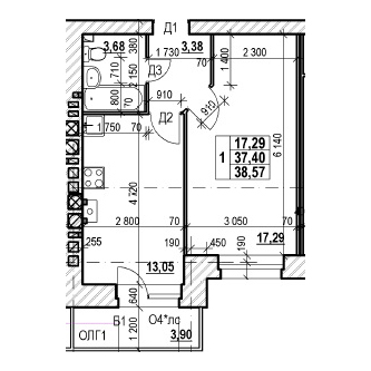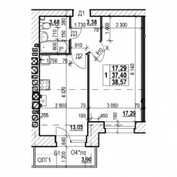 ОДНОКОМНАТНАЯ №13038.57 м2 Однокомнатная №130свободнаОбщая площадь