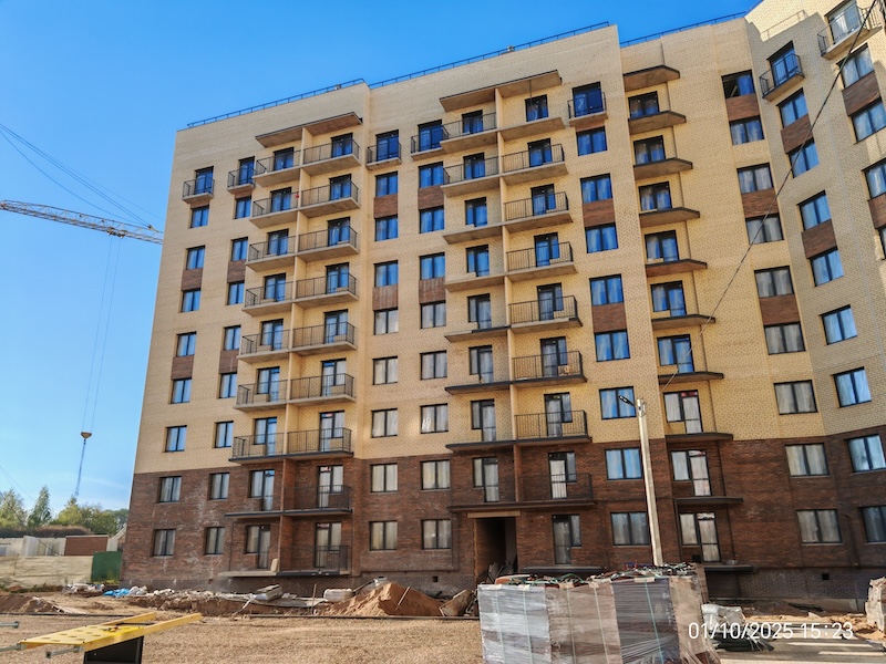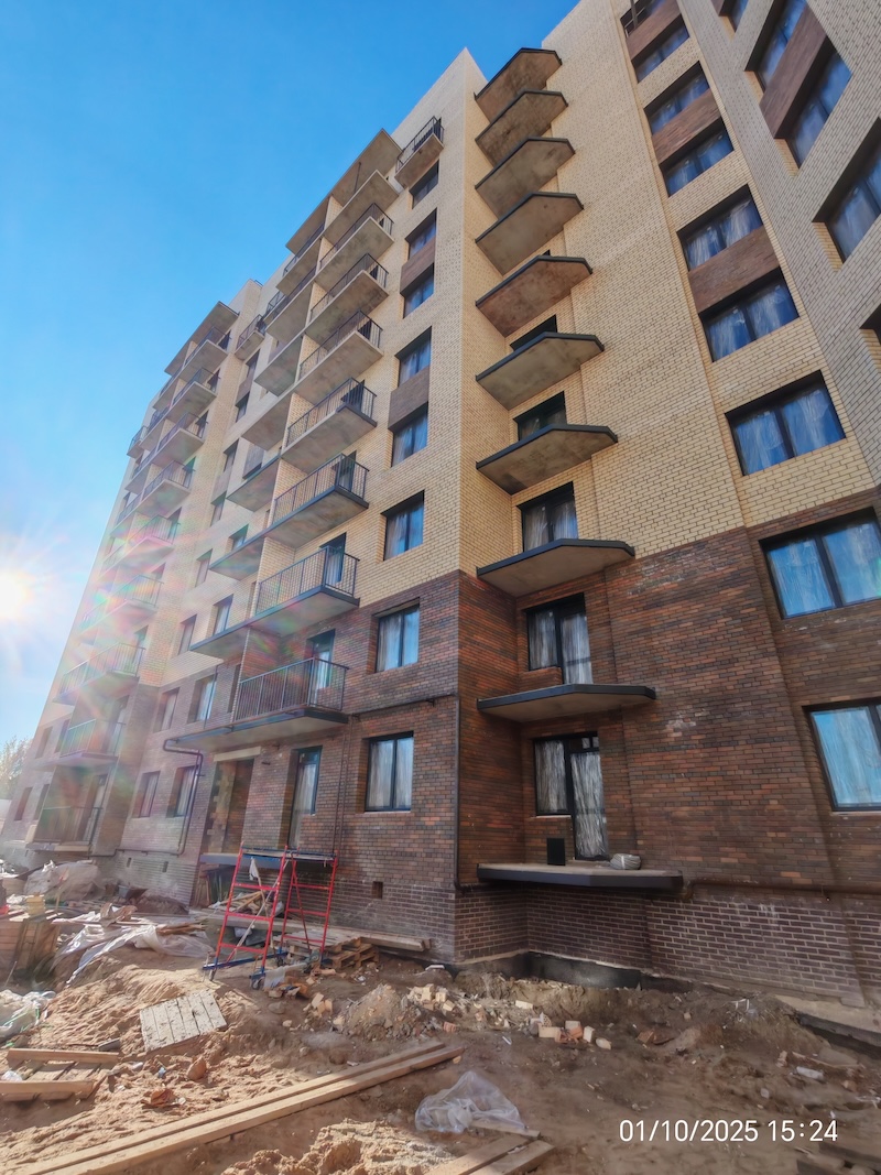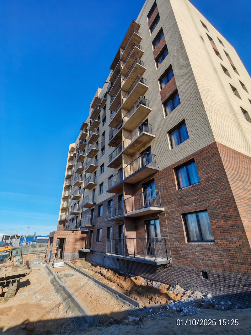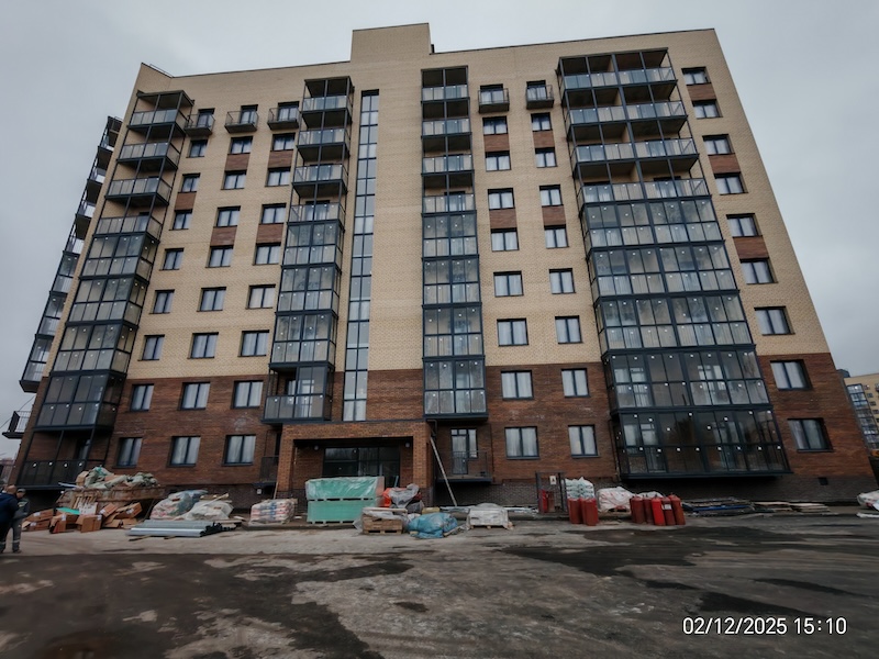 Квартиры передаются с полной отделкой: на полу ламинат, стены обои под покраску, натяжные потолки, санузел — пол и стены в керамической плитке, вся сантехника, межкомнатные двери, входная металлическая дверь, балкон/лоджия с остеклением.