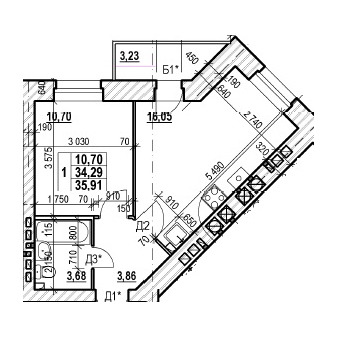 ОДНОКОМНАТНАЯ №10335.91 м2 Однокомнатная №103свободнаОбщая площадь