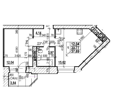 ОДНОКОМНАТНАЯ №8437.69 м2 Однокомнатная №84проданаОбщая площадь