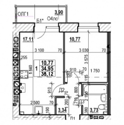 ОДНОКОМНАТНАЯ №17736.12 м2 Однокомнатная №177проданаОбщая площадь