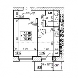 ОДНОКОМНАТНАЯ №12535.91 м2 Однокомнатная №125свободнаОбщая площадь